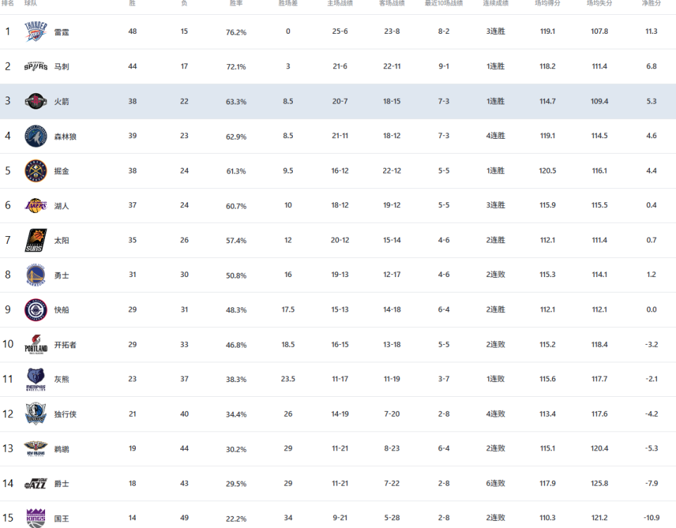 卫冕冠军雷霆原本断档领跑,但随着伤病问题的增加,以及马刺队的强势崛起,西部第一归属重燃战火。